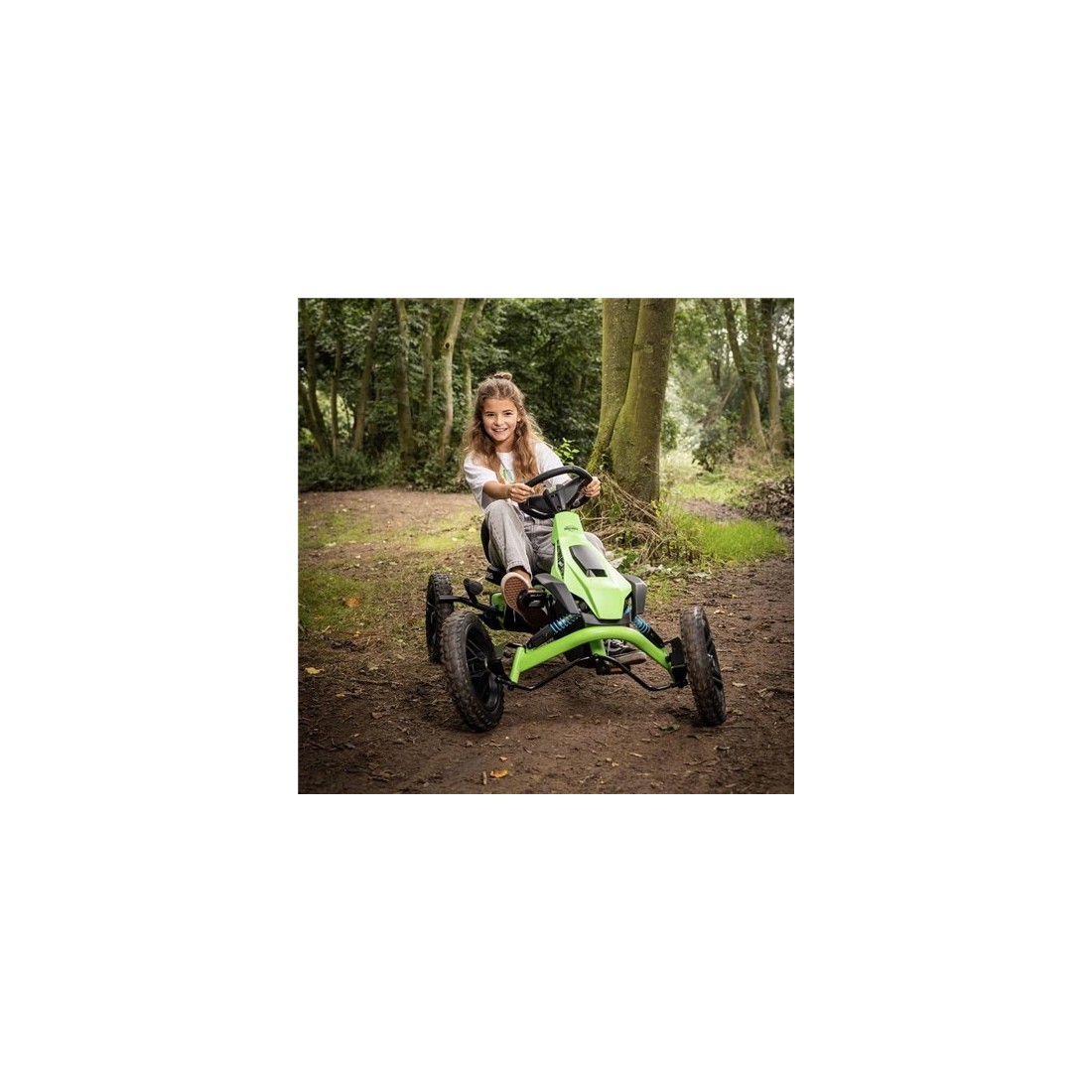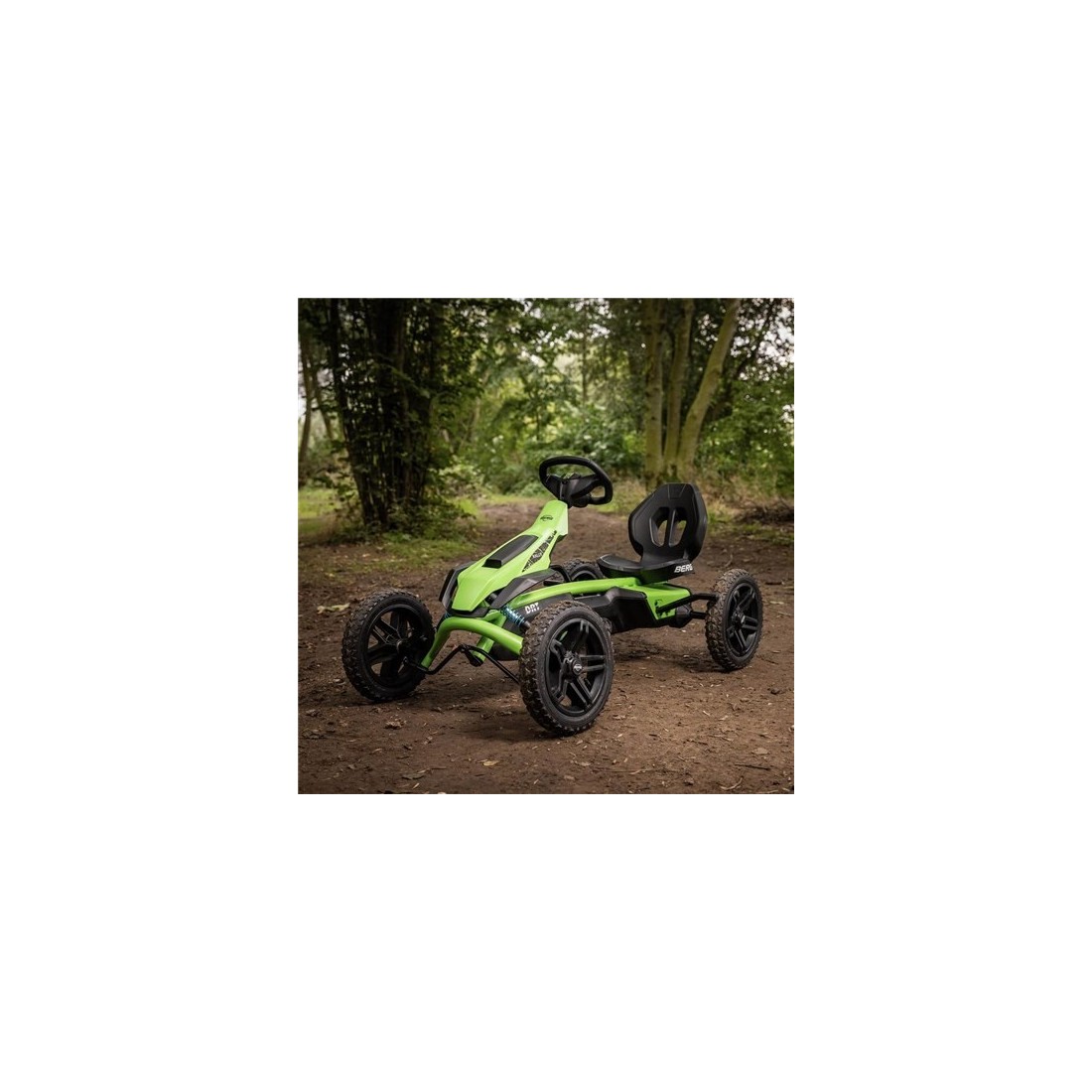 Domina cualquier sendero con el BERG Rally DRT Green. Este kart de pedales combina la agilidad de la serie Rally con la robustez de un auténtico todoterreno. Equipado con neumáticos de tacos de gran agarre y un sistema de frenado BFR de alta precisión, es el vehículo definitivo para niños de 4 a 12 años que buscan aventuras fuera del pavimento. Su diseño en verde militar y negro no solo es imponente, sino que está construido para resistir los desafíos más exigente