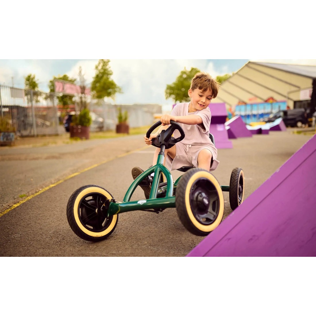 BERG Buddy Green: La esencia del auténtico Kart de Pedales El Buddy Retro Green es conocido por su maniobrabilidad y su resistencia. Es el modelo ideal para aquellos niños que quieren un vehículo que se sienta "como un coche de verdad" gracias a su sistema de dirección y sus neumáticos reales.