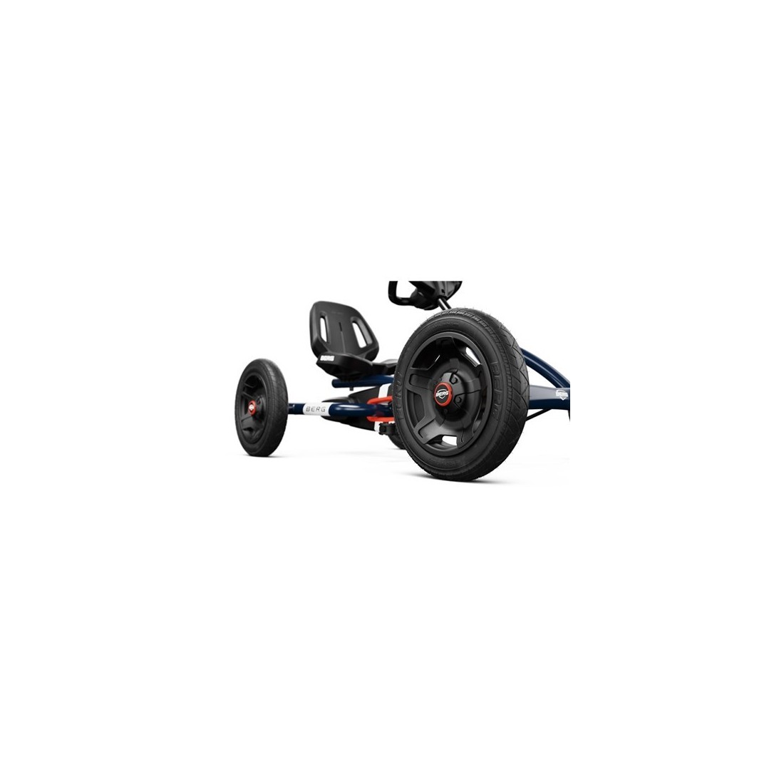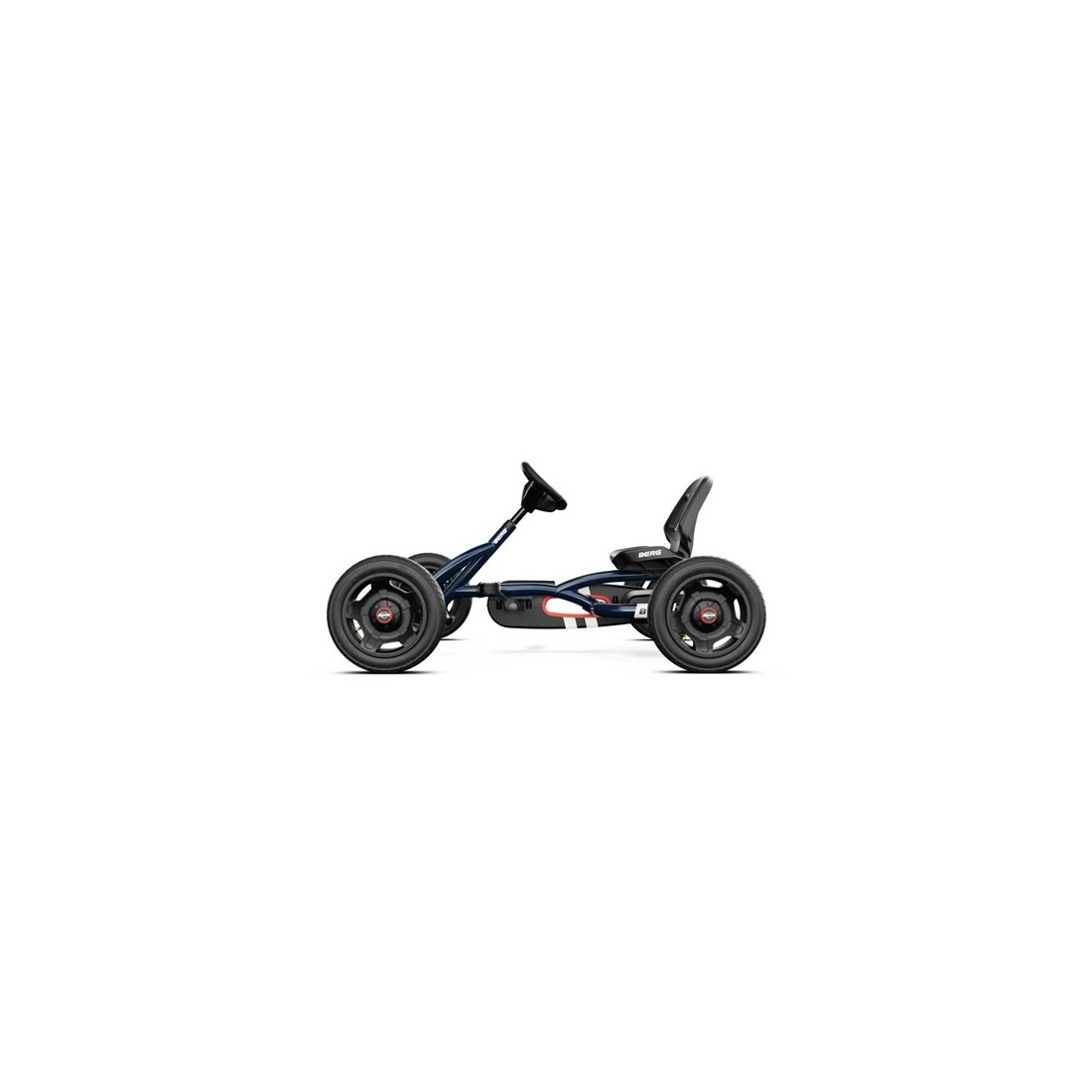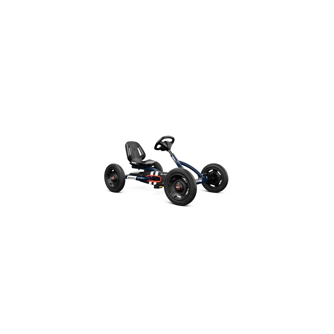 BERG Buddy Blue: La esencia del auténtico Kart de Pedales El Buddy Blue es conocido por su maniobrabilidad y su resistencia. Es el modelo ideal para aquellos niños que quieren un vehículo que se sienta "como un coche de verdad" gracias a su sistema de dirección y sus neumáticos reales.