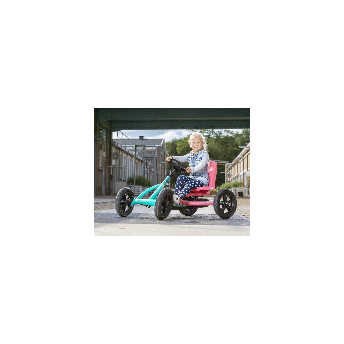 ¡Estilo y aventura sin límites! El BERG Buddy Lua es el kart de pedales más elegante para niños y niñas de 3 a 8 años. Combina un precioso diseño en tonos rosa y menta con la tecnología profesional de BERG. Gracias a su sistema BFR, es increíblemente fácil de conducir, frenar y dar marcha atrás. ¡El compañero ideal para crecer jugando al aire libre!