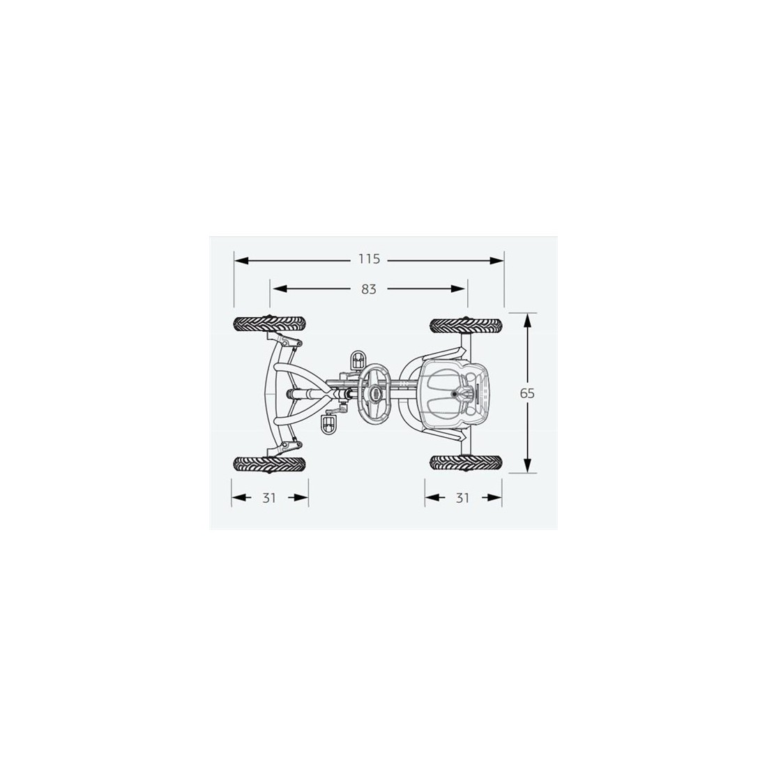 Medidas kart: 110 cm (largo)x 65 cm (ancho)x 50-65 cm (alto) Peso: 17 kg